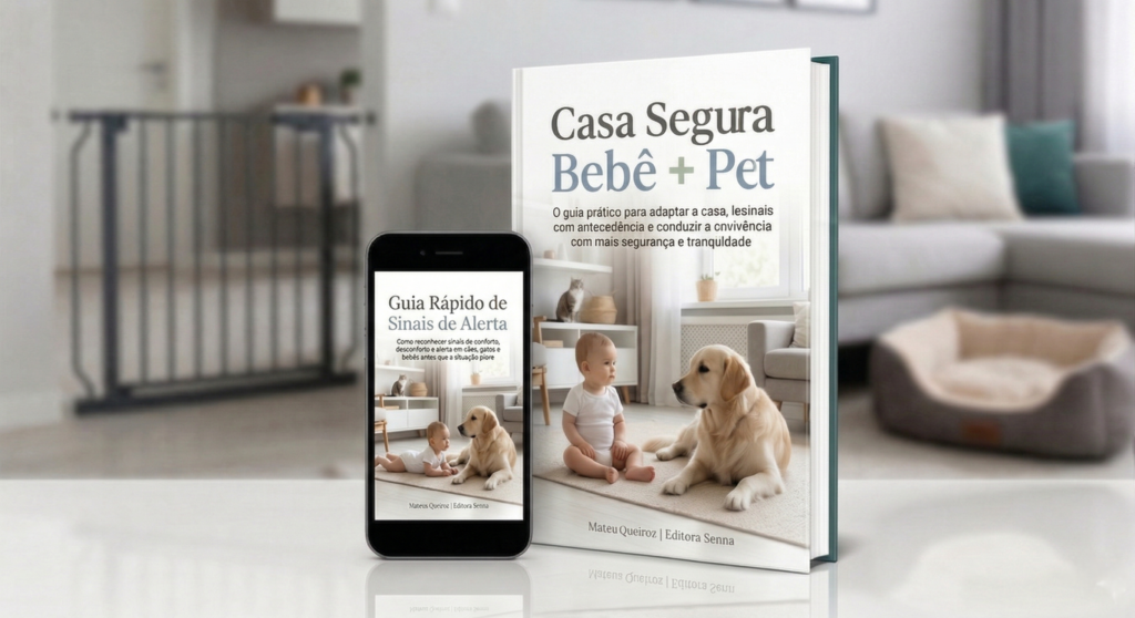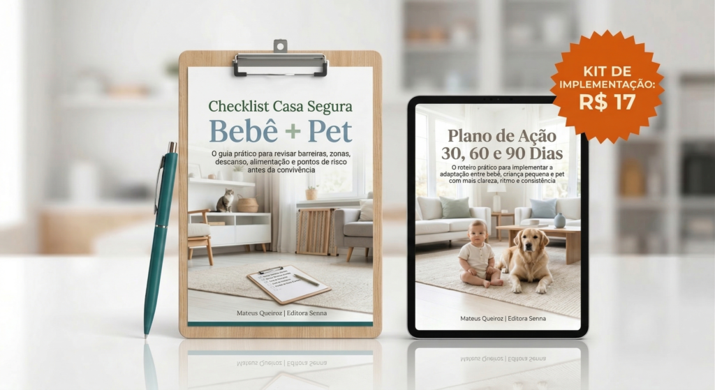 • Checklist Casa Segura Bebê + Pet: para revisar barreiras, zonas, descanso, alimentação, rotina e supervisão.